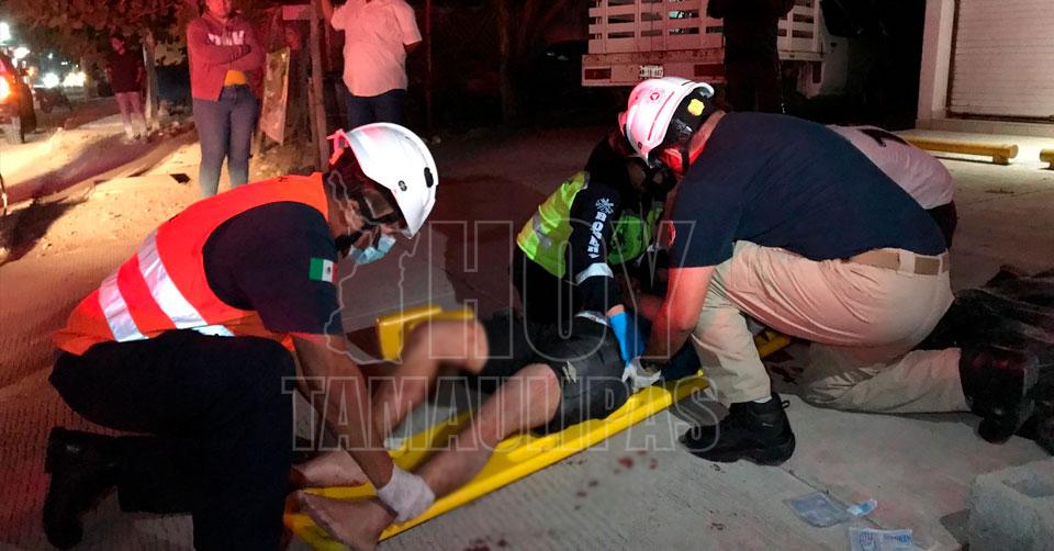 Ebrio albañil resultó lesionado tras accidente de moto en El Mante