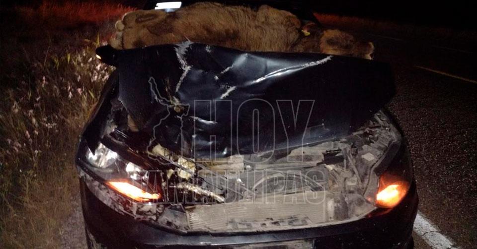 Se ensarta contra becerro en la carretera Aldama-Soto la Marina