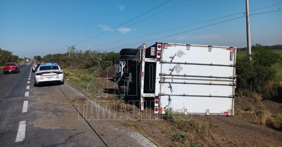 Tráiler que transportaba láminas volcó en la San Fernando- Reynosa