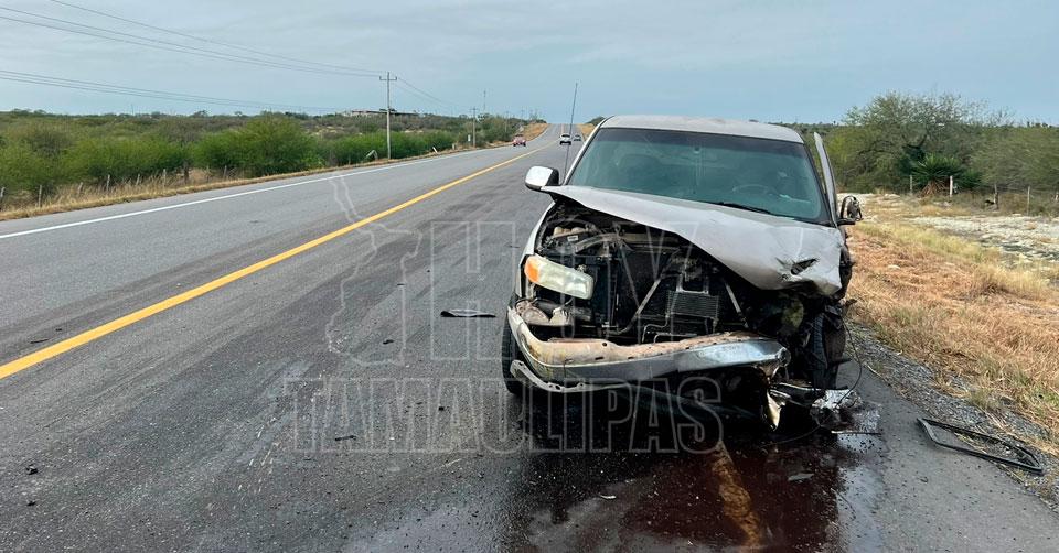 Abandonan camioneta tras choque en la Victoria-Matamoros