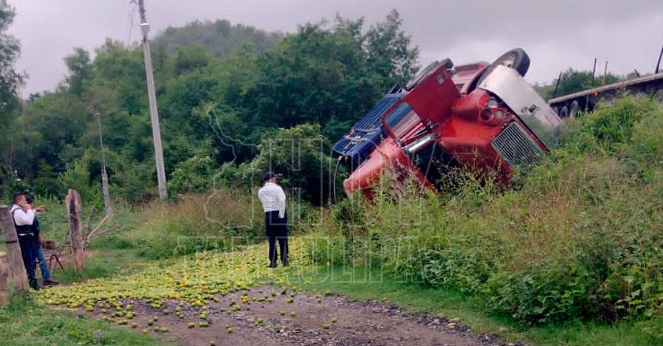Vuelca camión tortón cargado con limones en la Victoria-Monterrey
