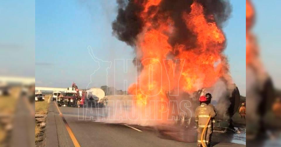 Cerrada autopista Reynosa- Monterrey por incendio de autotanque