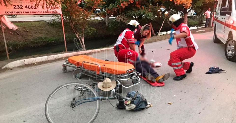 Ciclista resulta con traumatismo de cráneo tras accidente en El Mante