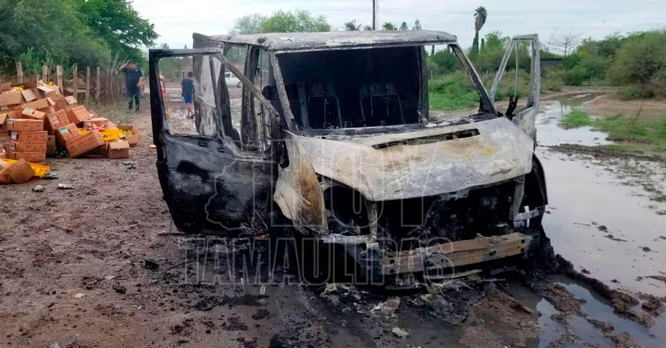 Camioneta termina reducida a cenizas en ejido de Jiménez