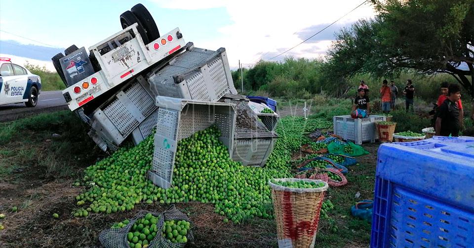 Vuelca camión cargado con limón italiano en la carretera Victoria-Monterrey