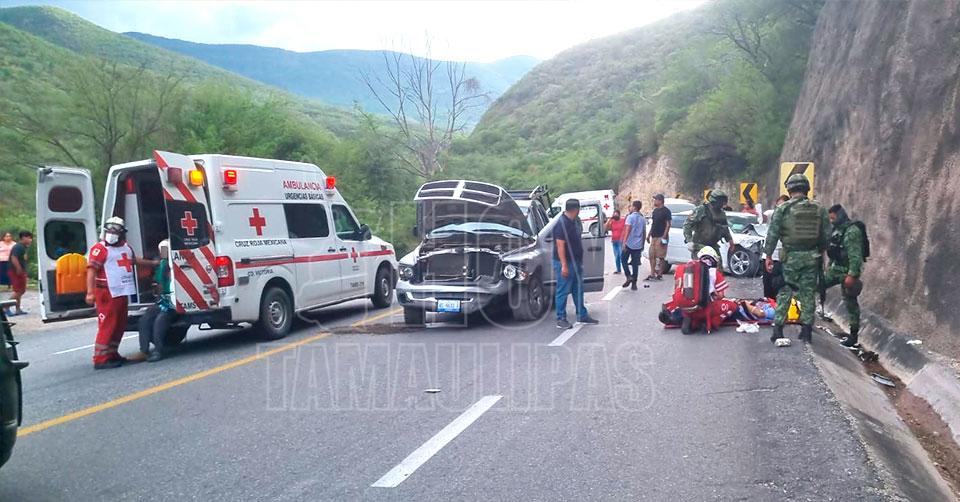 Ocho lesionados deja choque y volcadura en la carretera Victoria-Matamoros