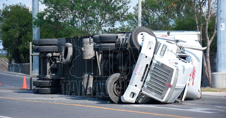 Vuelca tráiler cargado con polietileno en la carretera Victoria-Soto La Marina