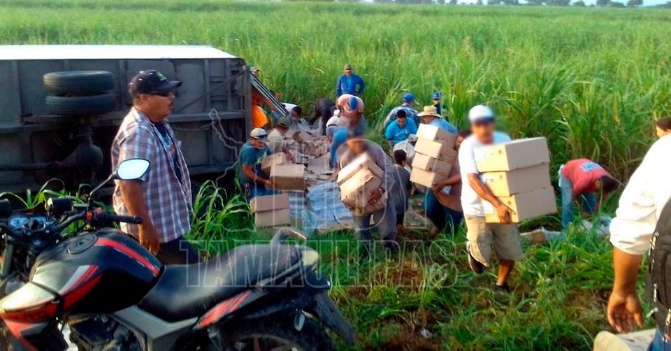 Se armó el pollito asado tras volcadura de camión en Xicoténcatl