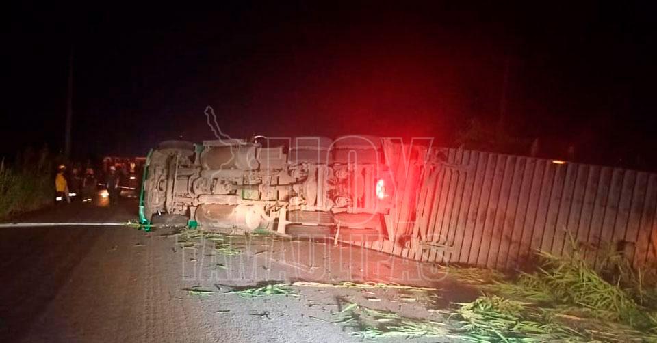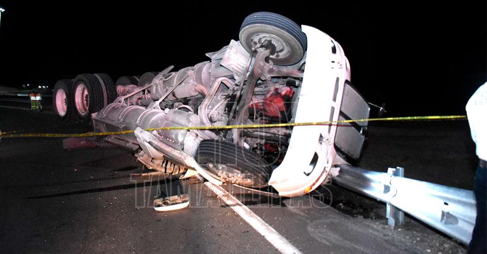 Muere en volcadura joven trailero en la carretera Zaragoza-Victoria