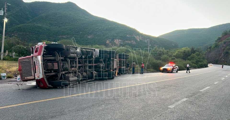 Vuelca tracto camión en el tramo Padilla–Jiménez