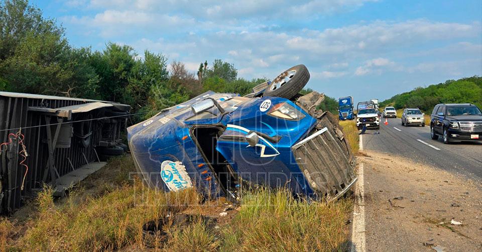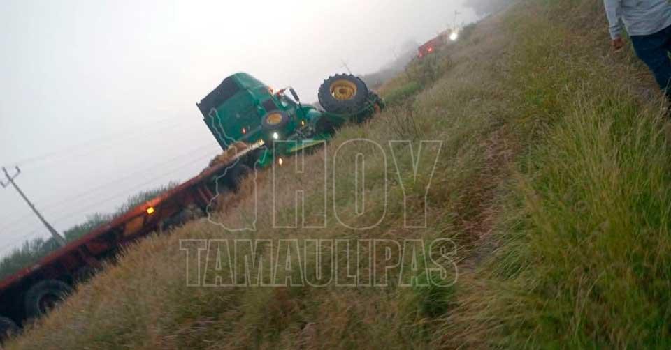 Volcadura de tráiler provoca cierre parcial en la Victoria-Matamoros