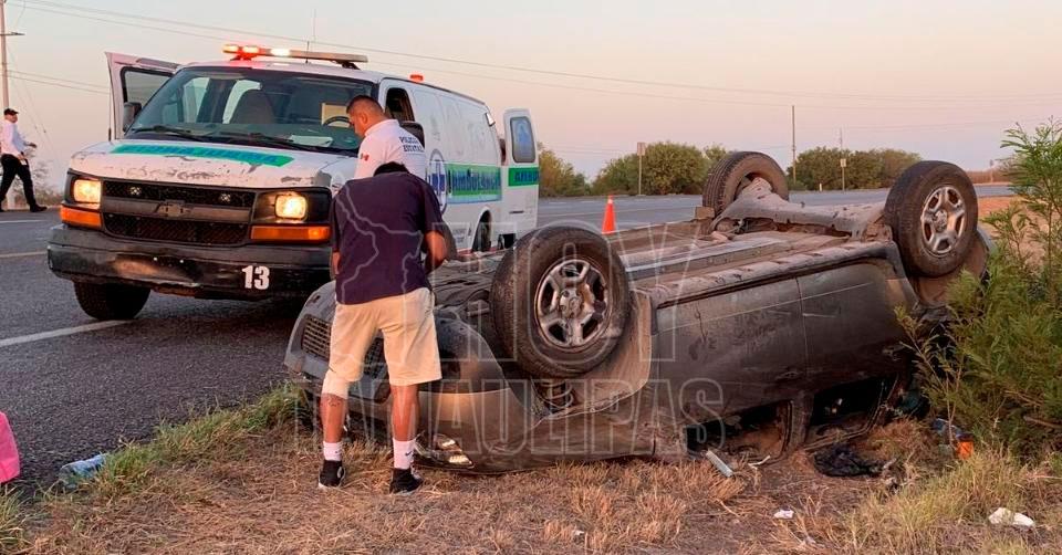 Vuelca familia en la carretera Victoria-Matamoros; cinco lesionados