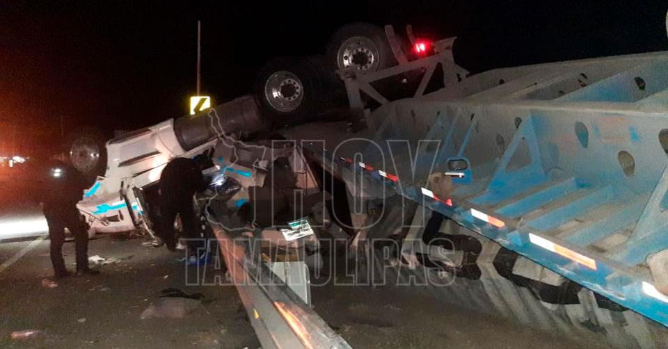 Trailero murió prensado tras volcadura en la carretera Victoria-Monterrey