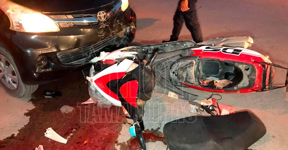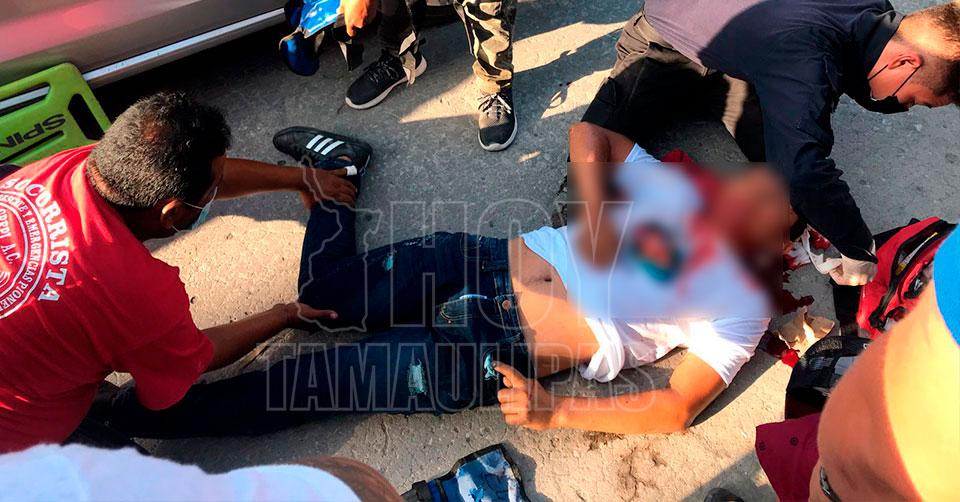 Entre la vida y la muerte motociclista al estrellarse contra auto en El Mante; no portaba casco