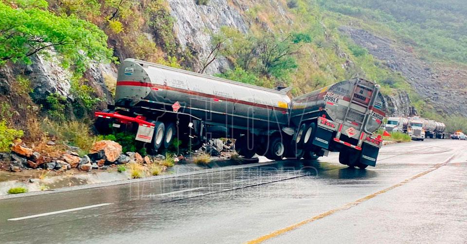 Chofer de tráiler pierde el control y se estrella contra talud en la Rumbo Nuevo