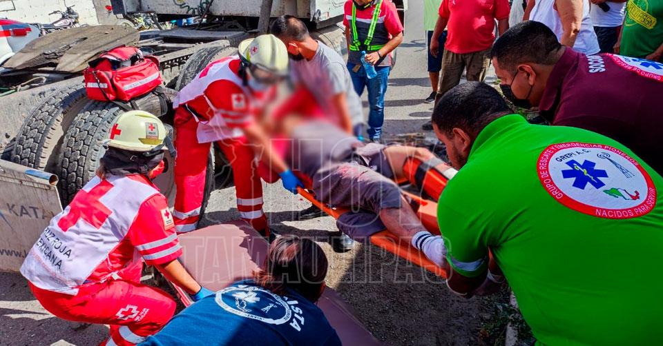 Madre y dos hijos quedaron atrapados en cabina de tráiler tras volcadura en San Fernando