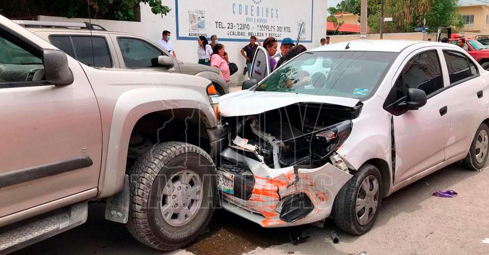 Conductora embarazada provocó carambola y resultó lesionada en El Mante