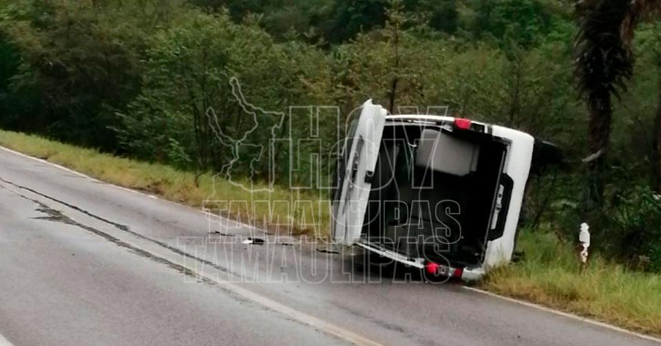 Volcadura deja 3 policías procesales lesionados en la carretera Victoria-Mante