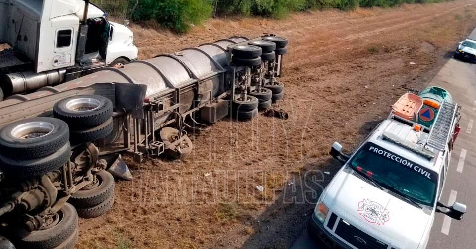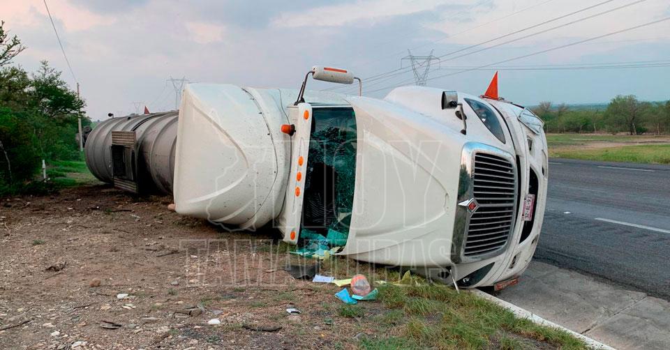 Chofer de pipa resulta lesionado tras volcadura en la Victoria-Matamoros