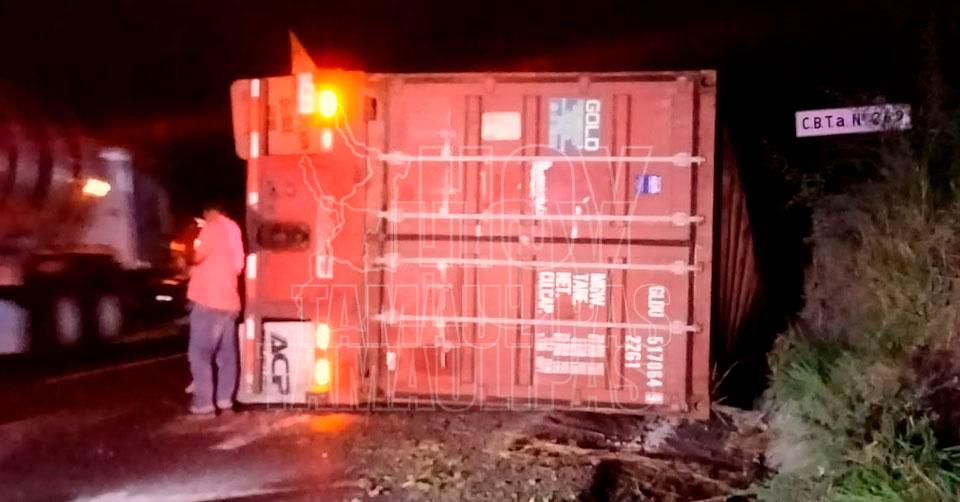 Dos lesionados dejó volcadura de tráiler en la Victoria-Monterrey