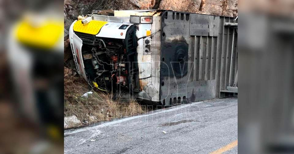 Vuelca trailero en la carretera Tula- Ocampo; iba a exceso de velocidad