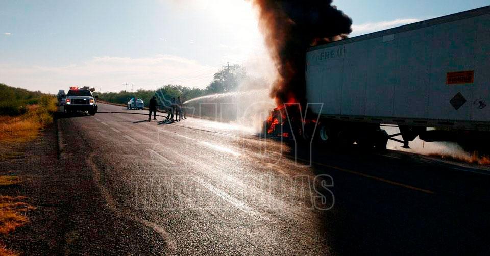 Fuego consume tráiler en la carretera Victoria-Matamoros