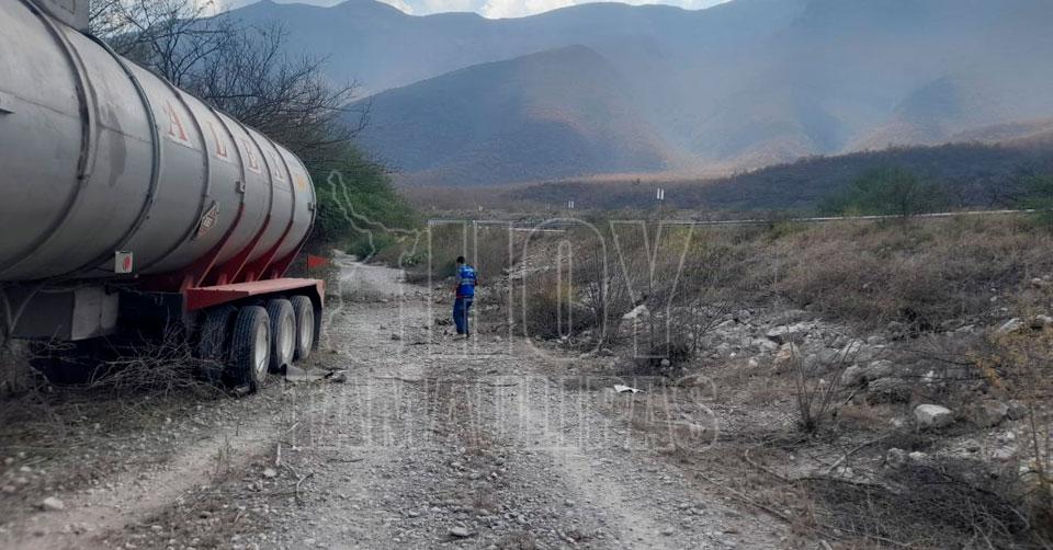 Se duerme chofer de pipa y termina entre el monte en la carretera Victoria-Tula