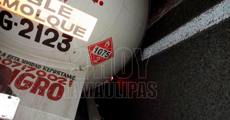Volcó autotanque de gas LP en la carretera Victoria-Tula