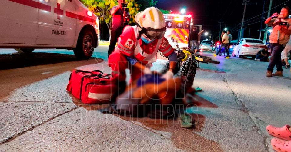 Motociclistas se estrellan contra auto estacionado en El Mante y resultan lesionados