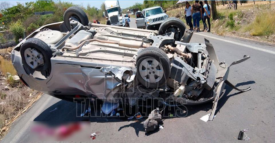 Una embarazada muerta y dos lesionados dejó volcadura en Ocampo, Tamaulipas
