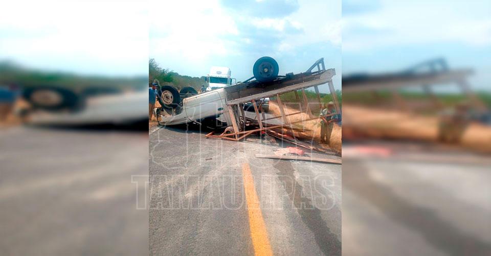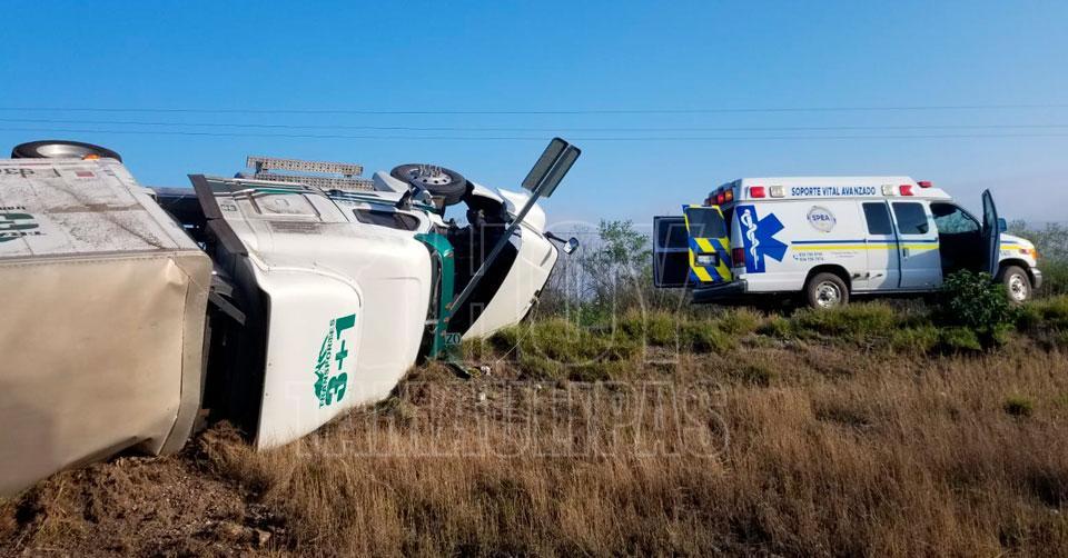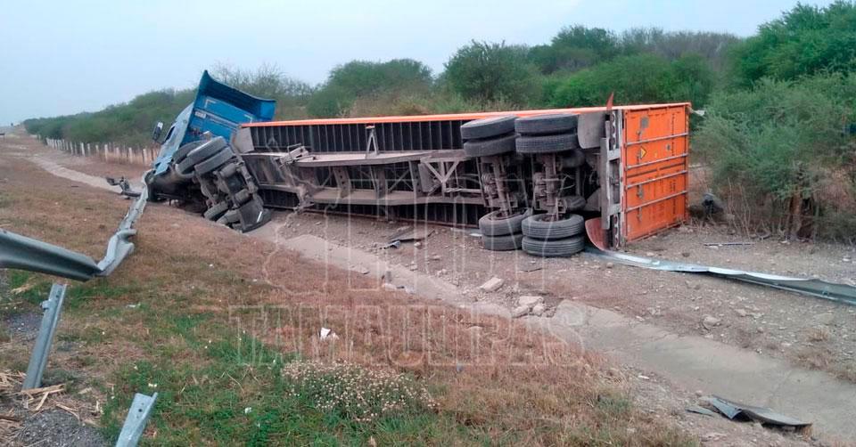 Vuelca camión materialista y chofer resulta ileso en la carretera Casas-Soto La Marina