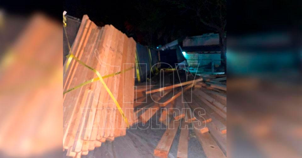 Volcó tráiler cargado con madera en la carretera Victoria-Monterrey