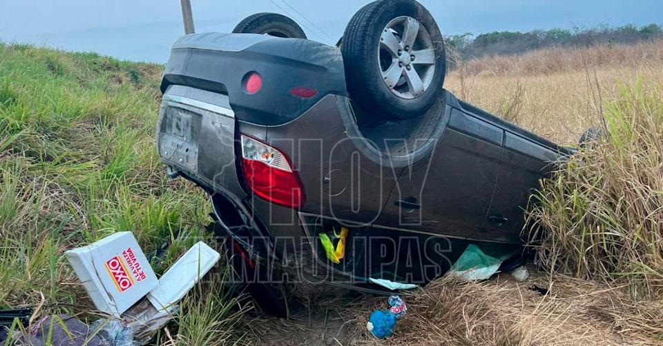 Joven de San Carlos, Tamaulipas vuelca y vive para contarla