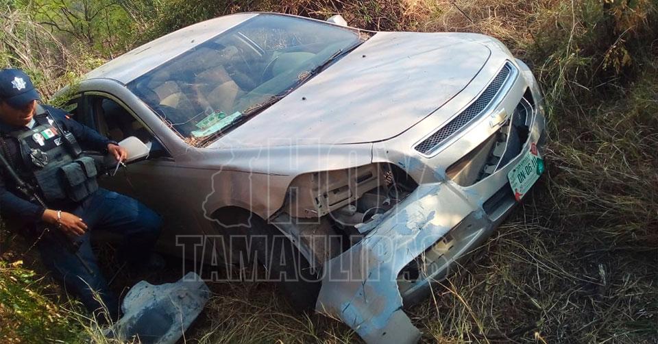 Conductor vuelca en su camioneta en la Tampico-Mante y la abandona