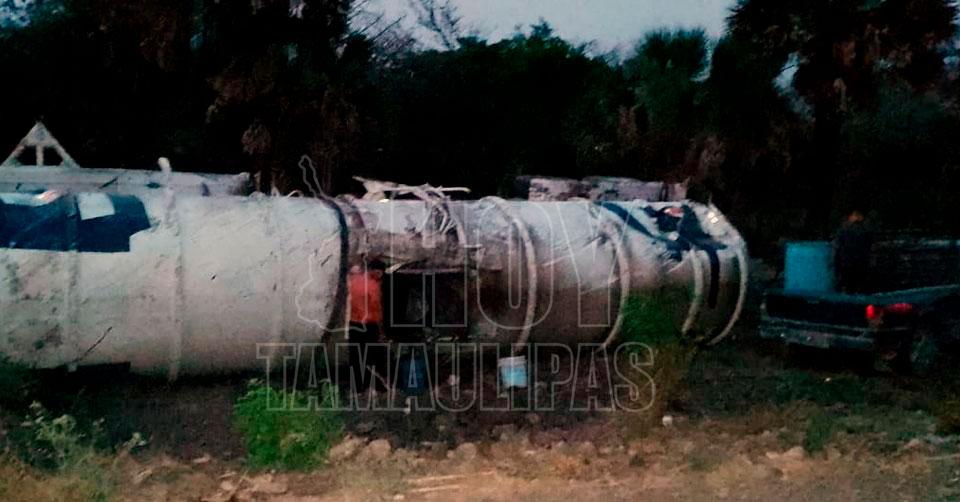 Volcó pipa cargada con melaza en la carretera Ocampo-Tula