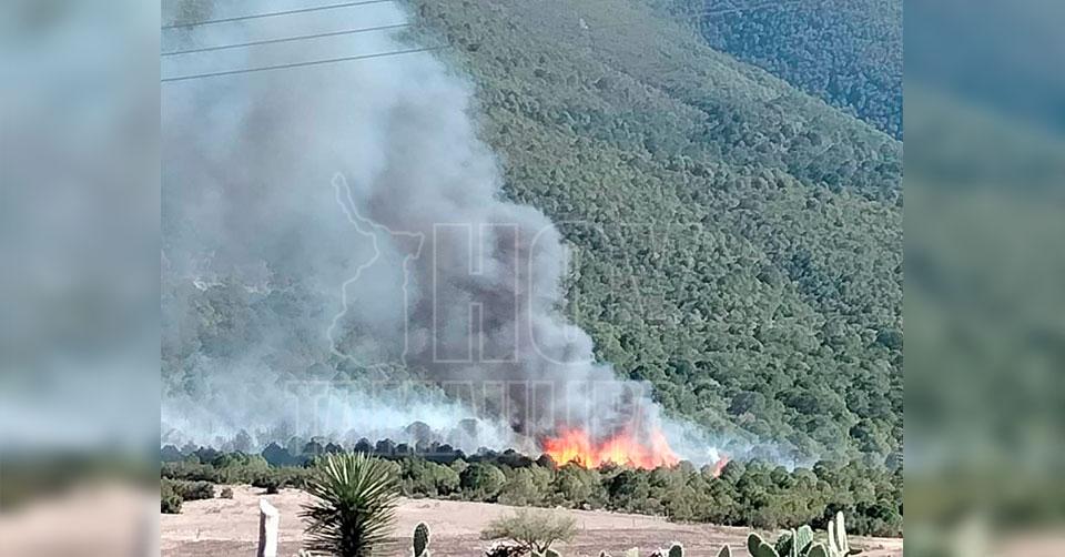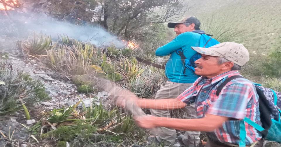 Ejidatarios junto a sus esposas combaten incendio en la sierra de Bustamante
