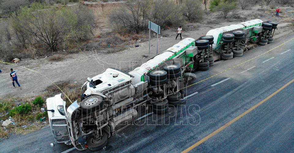 Vuelca pipa cargada con 60 mil litros de diésel en la Victoria-Tula