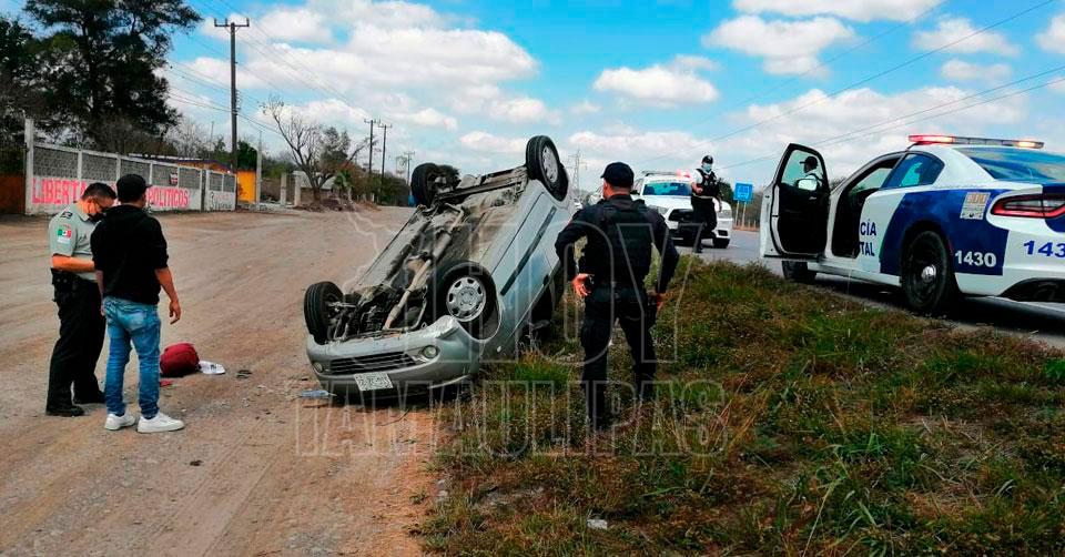 Conductor se salva de morir tras volcadura en la carretera Victoria-Monterrey