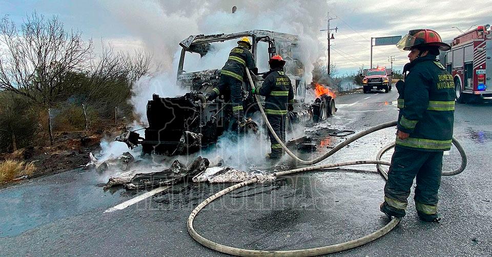Choque e incendio de tráileres deja un muerto en Aldama