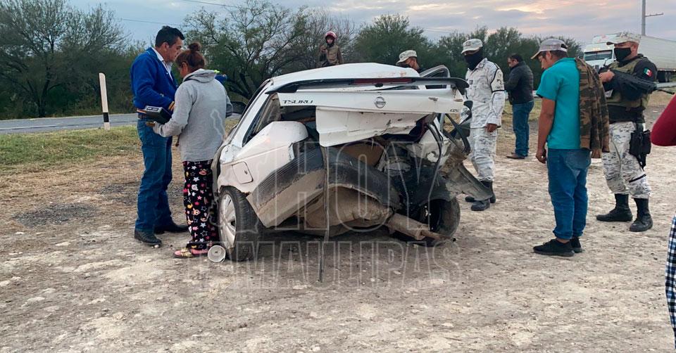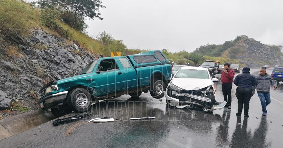 Encontronazo deja dos lesionados y cuantiosos daños en la carretera a Soto La Marina