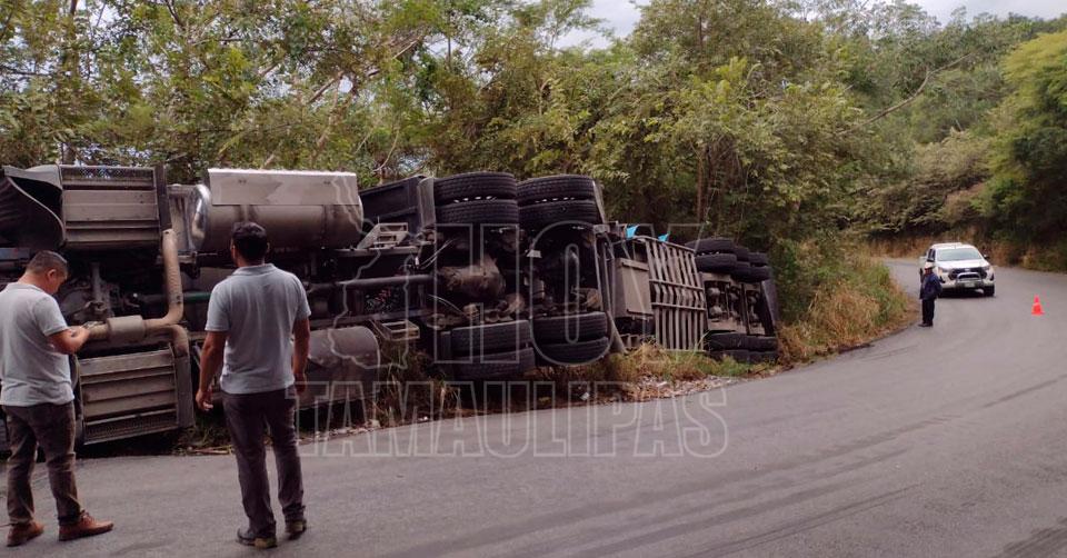 Vuelca tráiler cargado con maíz en la carretera Ocampo-Tula