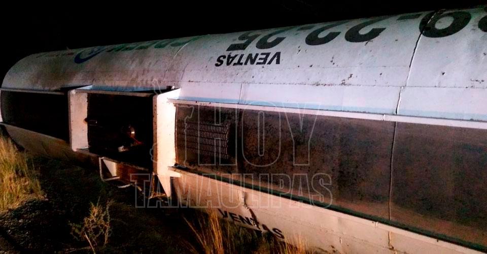 Volcó pipa cargada con diésel en la carretera Victoria-Matamoros