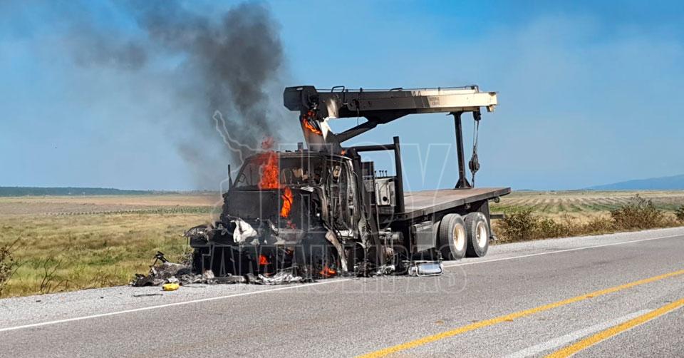 Se incendia camión grúa en la carretera González-Mante; no hay lesionados