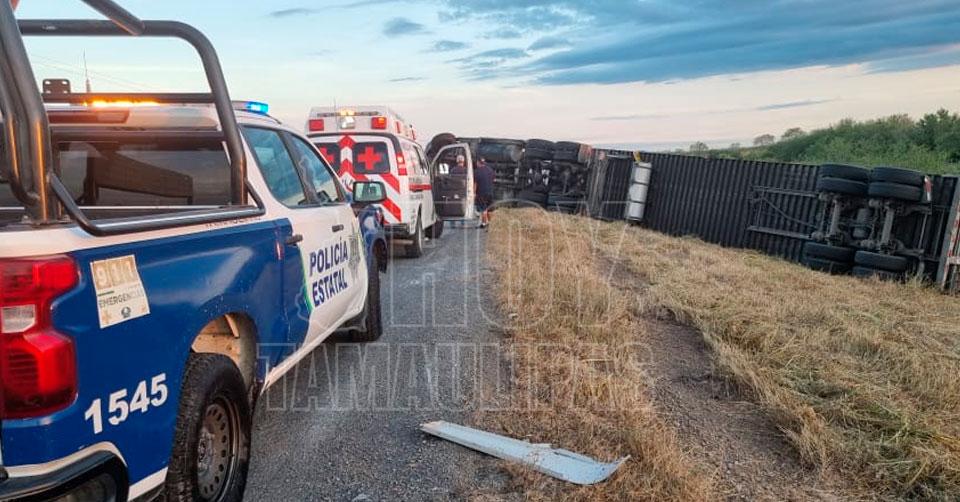Vuelca tráiler cargado con cueros de marrano en la Soto La Marina-Aldama