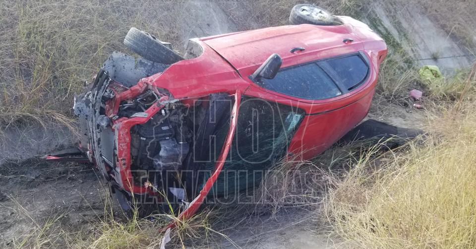 Por distracción con celular choca y vuelca en la carretera Victoria - Monterrey