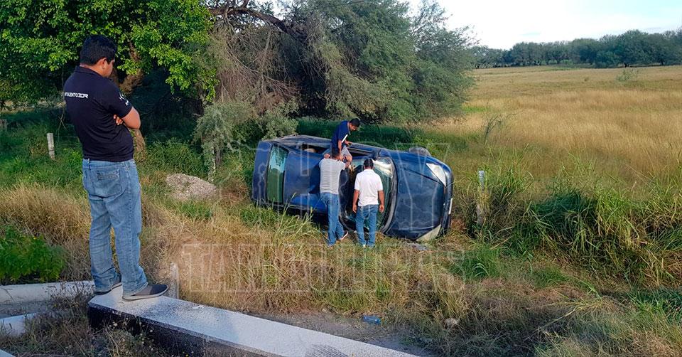 Vuelcan y cae a canal de riego en Abasolo; hay tres lesionados