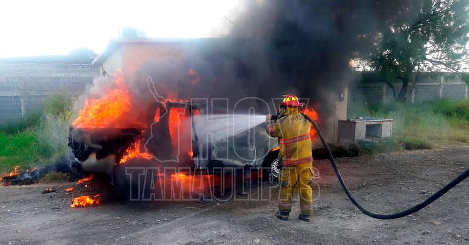Fuego acaba con camioneta en Camargo, Tamaulipas