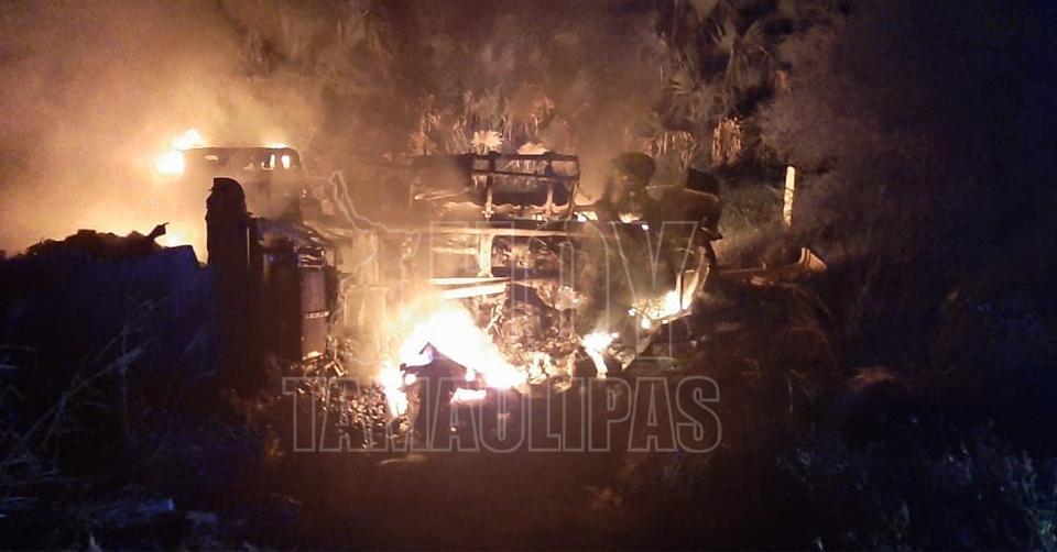 Vuelca y se incendia tráiler cargado con chayote en La Marina-Aldama