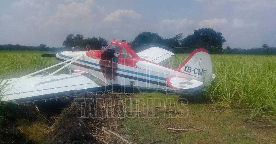 Cae avioneta fumigadora en sembradío de caña en El Mante