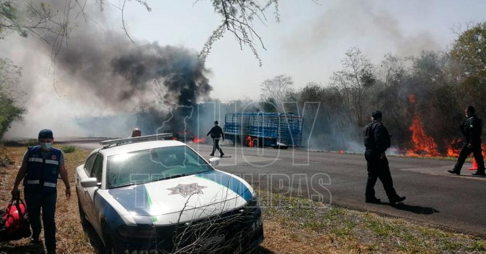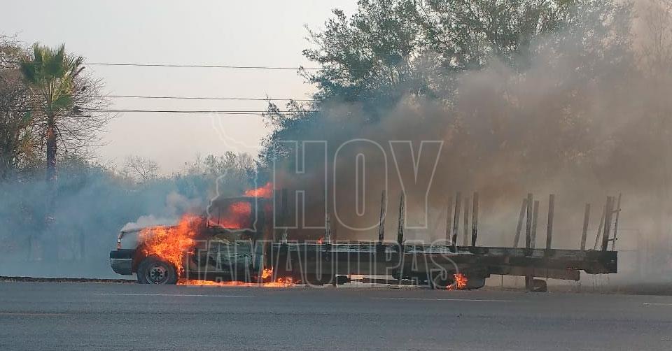 Incendio de camioneta pone en jaque a PC de Hidalgo, Tamaulipas